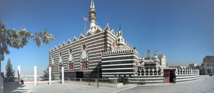 Abu Darwish Mosque with its alternating black and white stones inherit the traditional Levantine architecture.