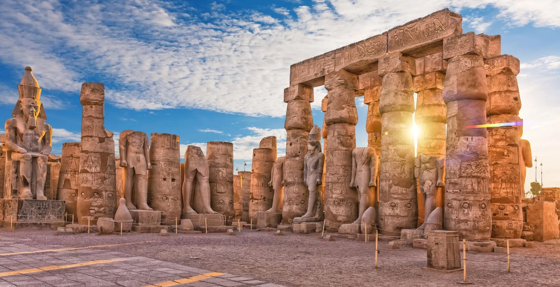 Ancient Luxor Temple Standing Ramses II statues First pylon ruins Egypt 1905x976 crop 50 58