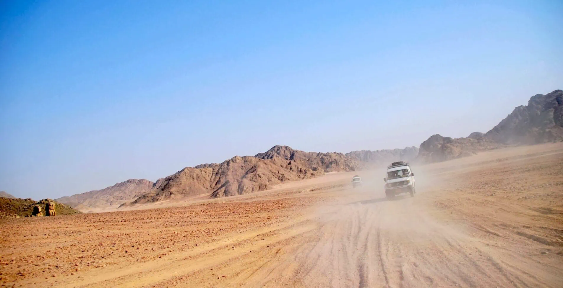 Jeep safari at dusty Eastern Desert in Egypt