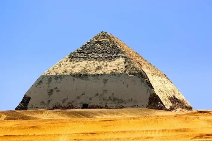 Essa pirâmide é conhecida como a “Pirâmide de transição”, devido ao ângulo de seus lados, que no lugar de ser contínuo, como nas pirâmides de Gizé, ele muda abruptamente. Isso aconteceu devido a um erro de cálculo, e o arquiteto, ao tentar consertar, optou por essa solução. Outra teoria é que ela teria sido construída às pressas, e por isso o formato. Ainda assim, o faraó Sneferu não teria ficado satisfeito, e mandou construir uma outra pirâmide bem próxima desta.
