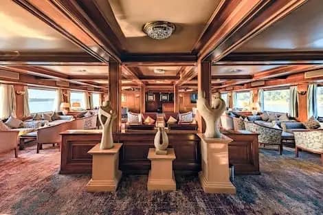 O Cruzeiro MS Salacia oferece uma jornada inesquecível pelo rio Nilo, destacando-se pelos seus serviços de alta qualidade, culinária refinada e acomodações confortáveis. As suítes Cabine e Royal, com aproximadamente 21 e 28 metros quadrados respectivamente, dispõem de duas amplas janelas cada. As cabines, elegantemente mobiliadas pela Royal, garantem uma experiência singular no Nilo.