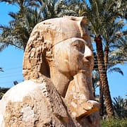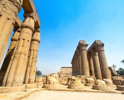 E o que você vai ver por lá? Bem, o templo é composto pelo grande templo de Amon, outros templos menores, capelas e o lago sagrado. Logo na entrada do templo, você vai se deparar com a Avenida das Esfinges, onde estão 40 esfinges com cabeça de carneiro, e essa avenida leva ao Templo de Luxor.